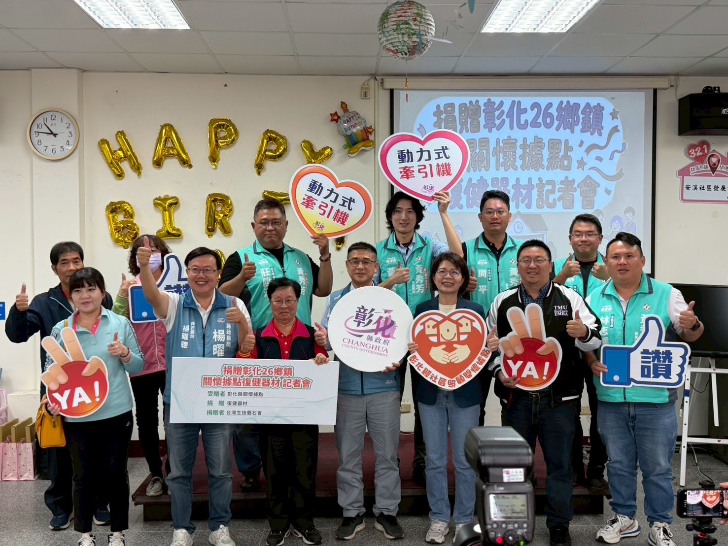 新聞焦點 捐贈彰化26鄉鎮關懷據點復健器材記者會 發布日期 2025/12/11~2026/01/11 | 發佈單位: 社會處 | 發佈日期: 長青福利科洪科長 7532331 | 更新日期 2025/12/11 | 瀏覽人數: 50人 為增進長者健康、肌肉伸展及延緩失能,彰化縣政府於今(11)日上午在彰化市安溪社區舉辦「捐贈彰化26鄉鎮關懷據點復健器材」記者會,公私協力由9個企業及個人捐贈彰化縣26鄉鎮各1台復健器材, 26台價值共約130萬元。由機要秘書張建豐代表縣長王惠美出席,期盼藉由捐贈活動拋磚引玉吸引更多企業團體及善心人士參與,共同為增進社區長者健康而努力。 彰化縣政府表示,感謝台灣生技磐石會蕭文昌會長及會員等企業及個人的善心,包括世基生醫蔡詩辰董事長、健康力黃千芬董事長、信望愛國際有限公司陳冠志董事長、金肯樘興業股份有限公司、新映澄有限公司許有杉董事長、勤業眾信合夥陳重成會計師、訊聯集團蔡政憲董事長、醫師公會顏鴻順理事長、羅麗芬集團羅麗芬總裁、瑞安國際陳堯濱董事長、強盛興企業林久喬總經理、天明製藥詹詠寧董事長等,共計捐贈26台動力式牽引機,分送給本縣26鄉鎮的社區照顧關懷據點。從評估安裝到使用教學,確保長輩在器材使用上安全無虞,提升長輩在據點活動的多樣性,有效預防及延緩長輩失能。 也感謝黃秀芳立法委員及莊陞漢縣議員連結善心人士及企業民間單位捐贈26台動力式牽引機,展現出公私協力的良好典範。未來縣府將持續與社會各界攜手合作,推動更多照顧長輩需求的服務,讓長輩都能在地安老,兒女出外打拼都可放心,將彰化縣打造成高齡友善城市。 本縣現已設置369處社區照顧關懷據點,提供關懷訪視、電話問安、餐飲服務、健康促進活動等服務。未來也將持續推動一村里一據點,讓長輩出門就有據點可以參與,每天都能與街坊鄰居一起上課或交流,實現「活到老、學到老、玩到老」的精神。 縣府用心辦理各項活動及推行老人福利措施,包括興建綜合式衛福大樓、長青學苑、獨居老人關懷訪視、緊急救援系統、防走失神器守護BBCall、裝置假牙補助、敬老眼鏡補助及長青幸福卡等,讓彰化長者在地安老,在熟悉的故鄉獲得最好的照顧。