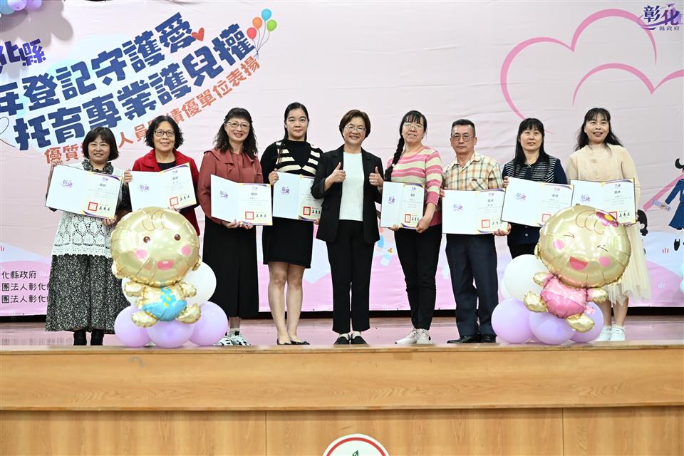 新聞焦點 彰化縣盛大表揚優質托育人員及績優單位 持續打造友善育兒環境 發布日期 2025/12/22~2026/01/21 | 發佈單位: 社會處 | 發佈日期: 翁科長 7532271 | 更新日期 2025/12/21 | 瀏覽人數: 166人 《置頂》 彰化縣政府為提升托育品質、肯定托育人員的專業付出,並記錄「居家托育登記制10週年」的重要里程碑,12月21日下午在和美鎮和東國小舉辦主題為「十年登記守護愛,托育專業護兒權」彰化縣114年度優質托育人員暨績優單位表揚活動,由彰化縣長王惠美親自表揚共248位托育人員(包括特殊績優居家托育人員10位、資深敬業居家托育人員213位、實習指導員20位、5位托嬰中心之優質托育人員)、7家特色托嬰中心及1家評鑑績優托嬰中心等長期深耕的托育人員。王縣長感謝大家的付出,為幼兒提供安全專業的照顧,讓家長無後顧之憂,孩子能快樂成長。 王縣長表示,感謝各協會理事長帶領團隊在嬰幼兒照顧上的用心努力,感謝議長謝典霖及所有議員對縣府預算的支持。面對少子化的衝擊,縣府一直希望減輕年輕人的育兒負擔,目前已設置10處育兒親子館、10處公設民營托嬰中心及54家私立托嬰中心,未來將逐年建置37處公設民營托嬰中心及20處育兒親子館,以平價優質的服務打造友善育兒環境。 王縣長指出,托育登記制迄今已滿10年,彰化縣領先全國首創「居家托育人員實習制度」,推動專業經驗傳承,讓新任登記托育人員在實務中逐步累積能力。同時,縣府與彰化縣家樂福人文生活關懷協進會、彰化縣保母協會攜手合作,設置居家托育服務中心,為家長媒合具備合格登記的托育人員,協助家長安心送托。此外,我們也與彰化縣嬰幼兒發展協會及朝陽科技大學合作,辦理各項托育人員課程與主管研習,持續提升彰化縣托育服務品質。期盼透過公私協力,營造安心、安全的托育環境,讓年輕人「生得起、養得起」。 立委謝衣鳯表示,感謝王縣長縣府團隊的用心,積極與民間協會合作,發掘更多績優的托育人員及托育機構,除了讓家長有眾多托育選擇外,也能安心把孩子送至保母及托育機構,獲得完善照顧。 和美鎮長林庚壬表示,因深知幼兒教育的重要性,在擔任議員期間服務處與中州科技大學合作,開設12個班級並培訓約6、7百名托育人員。此外特別感謝王縣長多年來對和美鎮老幼照顧政策的大力支持。 社會處表示,縣府推動托育準公共化政策多年,簽約率穩定維持在高標準,有效降低家長托育負擔,同時保障托育人員工作權益。縣府透過居家托育服務中心與專業研習課程持續強化托育人員的專業知能,以期讓每位幼兒都在安全、專業、友善的環境中快樂成長。 活動安排多項互動,包括兒童權利公約(CRC)宣導攤位、教玩具展示與玩具交換,讓民眾、托育人員、家長與孩子都能在輕鬆氛圍中學習與交流。現場也設有宣導攤位、親子互動遊戲及托育資源介紹,鼓勵家長選擇合法立案托嬰中心或合格登記之居家托育人員,透過官方媒合平台查詢托育資源,保障幼兒權益。 家長如有托育需求,可洽詢彰化縣居家托育服務中心(南區:04-8376795、北區:04-7622281)或本縣社會處兒童及少年福利科04-7532284、04-7532284;彰化縣合法立案托嬰中心(洽詢:04-7532280)或至彰化縣政府社會處網站及衛生福利部「托育媒合平臺」網站查詢,網址:https://ncwisweb.sfaa.gov.tw/home/index)。 與會貴賓有立委謝衣鳯、陳秀寳、議員林小琪、議員賴清美服務團隊、議員林宗翰服務團隊、議員周君綾服務團隊、和美鎮長林庚壬、社團法人彰化縣保母協會理事長謝美娟、社團法人彰化縣嬰幼兒發展協會常務理事陳秀蘭、財團法人中華民國唐氏症基金會副執行長鄭賢明、彰化縣北區居家托育服務中心主任陳惠美、縣府社會處副處長涂敏群、各級民意代表與地方仕紳等。