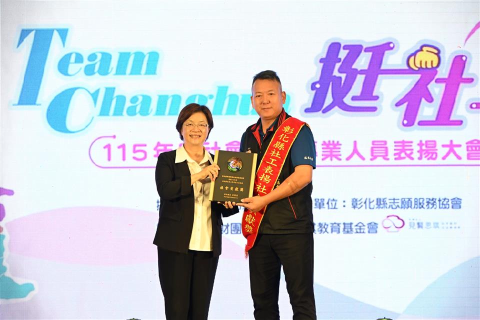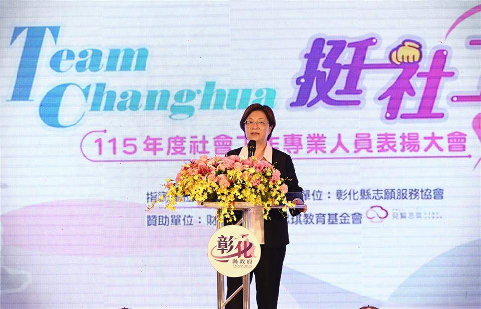 新聞焦點 「Team Changhua,挺社工!」響應全國社工日 彰化縣盛大表揚社會工作專業人員 發布日期 2026/04/01~2026/05/01 | 發佈單位: 社會處 | 發佈日期: 楊科長 7532221 | 更新日期 2026/04/01 | 瀏覽人數: 93人 響應4月2日全國社工日,彰化縣政府以「Team Changhua,挺社工!」為主題,於4月1日晚間在花壇鄉全國麗園大飯店舉辦「115年度彰化縣社會工作專業人員表揚大會」。縣長王惠美親自頒獎表揚118位績優社工、103個社政人員及2間社福機構團體,向長期在醫療、社區、兒少、身心障礙、老人、婦女及家庭等領域付出、守護弱勢與家庭的社會工作人員表達最深的敬意與感謝,肯定對社會的貢獻與努力。 王縣長表示,許多弱勢朋友在第一時間遇到緊急狀況,都是社工夥伴提供最專業溫暖的服務,因為社工夥伴的守護,讓許多家庭走出陰影、看見希望。恭喜接受表揚的優秀夥伴,長期陪伴許多家庭走過困境。也恭喜「彰化縣伸港鄉溪底社區發展協會」及「財團法人弘道老人福利基金會彰化服務處」榮獲「社會貢獻獎」,兩個團體長期投入社會服務,陪伴弱勢家庭度過困境。縣府除肯定社會工作人員平日的辛勞與付出,也期盼社會大眾能更加理解社會工作專業,為社會帶來更多溫暖。 王縣長指出,縣府重視社工人員的工作環境及權益,不斷提升社工人員的待遇福利,除提高薪資之外,也積極地辦理專業訓練跟實務課程,協助社工夥伴能更得心應手。為保障社工外勤服務的人身安全,也準備安全警報器,建立完善權利通報救濟及申訴機制。並提供紓壓課程、心理諮商,希望社工夥伴照顧別人,也要照顧自己。縣府持續推動「全民雞婆心運動」,結合縣府、各公所、村里長,以及民間團體跟社區力量,建立更完善的社會安全網。 社會處表示,本次表揚大會共頒發6類獎項,其中個人獎項包括:「明日之星獎」21位、「火力十足獎」31位、「薪火相傳獎」26位、「馬拉松獎」24位及「珍愛永續獎」16位,合計共有118位來自彰化縣各公私立社福機構的優秀與資深社工獲得肯定。同時表彰來自各鄉鎮市公所的103位社政人員。感謝公所社政同仁長期推動各項社會福利服務及防災工作,特別於社工日系列活動中一併頒發「115年度績優社會行政人員」獎項,肯定公所夥伴長期以來對社福工作的協助。 社會處指出,為感謝縣內社工辛勞付出,縣府特別準備驚喜,將於社工日當天透過簡訊方式提供各領域社工午茶券,向社工夥伴表達感謝。今年社工日系列活動內容包含社工表揚大會、社工家庭日、心理諮商服務及貼心好禮等,期望讓平日忙碌於第一線服務的社工人員,在工作之餘也能放鬆身心、紓解壓力並持續學習,感受社會各界的關懷與祝福。 與會貴賓有立委謝衣鳯、黃秀芳、議員莊陞漢、彰化縣議員李成濟服務團隊、社會處長王蘭心、副處長涂敏群、彰化縣社工師公會常務理事許哲榮、社團法人彰化縣志願服務協會理事長賴協助、財團法人老五老基金會執行長游麗裡、財團法人台灣兒童暨家庭扶助基金會彰化分事務所主任王震光、彰化家扶扶幼委員會主委李世湧、財團法人基督教瑪喜樂社會福利基金會院長林玉嫦、財團法人彰化縣私立慈恩老人養護中心主任賴亭文、財團法人弘道老人福利基金會彰化服務處長周雨潔、彰化縣伸港鄉溪底社區發展協會理事長柯怡傑、各民意代表及地方仕紳等。