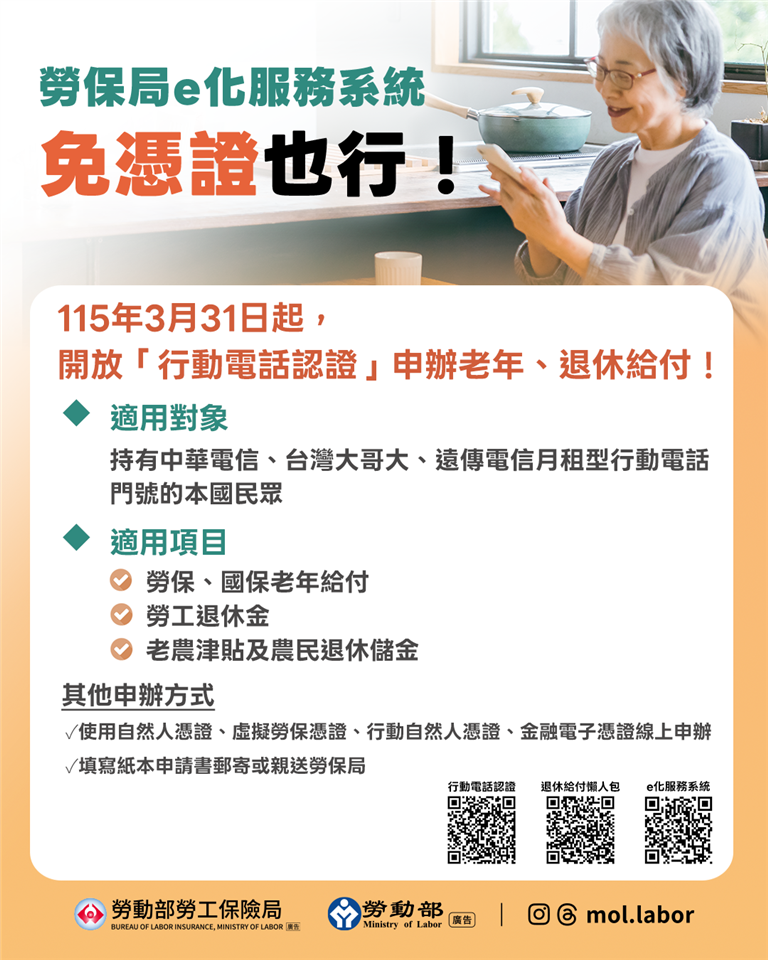 4-4.國民年金給付申請書 瀏覽人數: 2091人 一、老年年金給付申請書 https://www.bli.gov.tw/0101306.html 二、老年基本保證年金申請書 https://www.bli.gov.tw/0101304.html 三、原住民給付申請書 https://www.bli.gov.tw/0101307.html 四、身心障礙(基本保證)年金給付申請書 https://www.bli.gov.tw/0101308.html 五、遺屬年金給付申請書 https://www.bli.gov.tw/0101309.htmld 六、遺屬年金給付追溯補發申請書 https://www.bli.gov.tw/0101309.htmld 七、喪葬給付申請書 http://https://www.bli.gov.tw/0101305.html 八、生育給付申請書 https://www.bli.gov.tw/0101312.html 九、國民年金保險減領給付申請書 https://www.bli.gov.tw/0101310.html 十、承辦單位:勞工保險局 服務電話:02-2396-1266 納保及保險費計算事項:分機6055或6077 老年年金給付:分機6011 生育給付事項:分機2377 老年基本保證年金、原住民給付事項:分機2366 身心障礙年金、遺屬年金及喪葬給付事項:分機6022 保險費繳納查詢事項:分機6033 保險費轉帳代繳事項:分機6044 勞工保險局彰化辦事處電話:04-725-6881 請覈實填寫上述申請書資料,並將相關資料郵寄至「勞動部勞工保險局國民年金組」, 郵寄地址:100023臺北市中正區濟南路2段42號「勞動部勞工保險局國民年金組」。