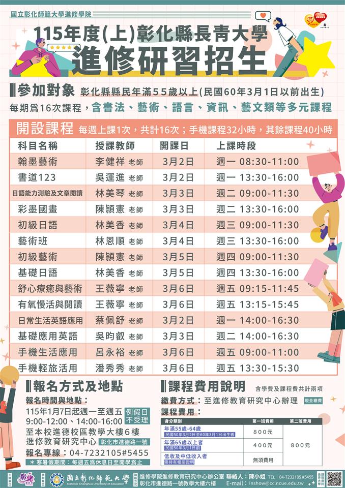 下載彰化師範大學115年上半年度長青大學招生海報(4.00MB)